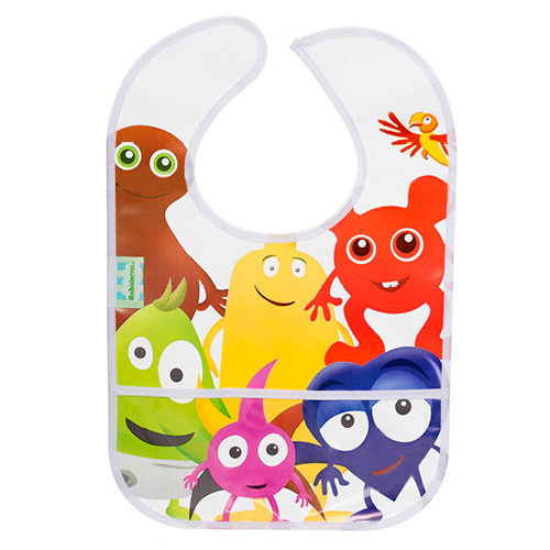 Med «BABBLARNA Bib Vi är Babblarna» beskytt barnets favorittkarakterer. Babblene beskytter babyens og babyens klær mot sølt mat og drikke!