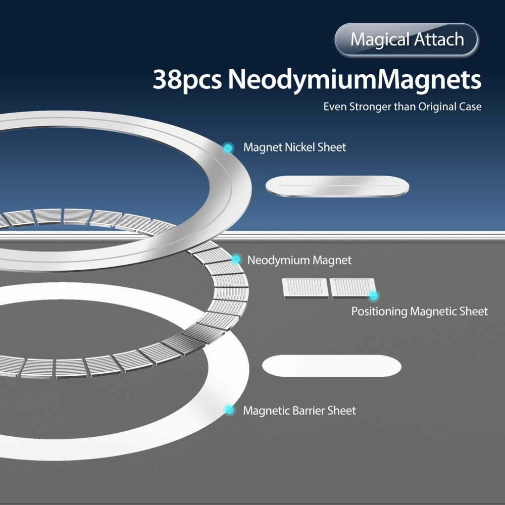Kompatibel med MagSafe Laget av 38 neodymmagneter den innebygde magnetringen forsterker den magnetiske tilkoblingen for å være kompatibel med MagSafe-lading