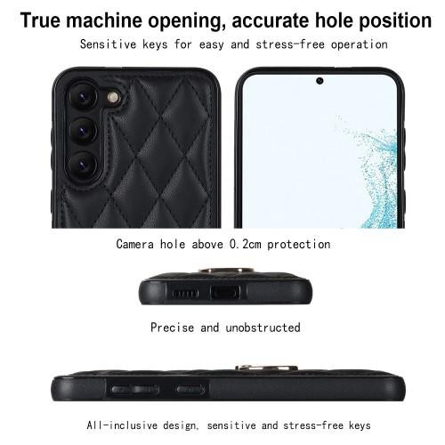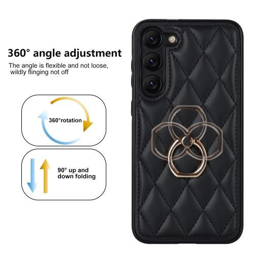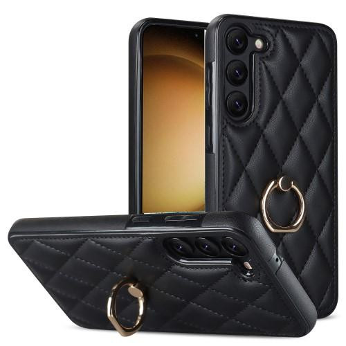 Samsung Galaxy S23 Rhombus Grid Mønsterveske Fingerring - Svart