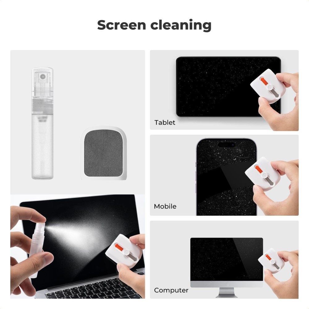 【Allt-i-ett praktisk sett】 Hold de tekniske enhetene dine rene og polerte når som helst og hvor som helst med vår lette og bærbare skjermrens! Designet i lommestørrelse gjør det enkelt å bære uten å ta for mye plass. Det stilige utseendet gjør det også til et flott kontor- og hjemmeinnredningselement, som fungerer som pennholder eller telefon-/nettbrettholder. Perfekt som gave til venner, kolleger, fotografer eller alle som liker en rengjøringsverktøykasse