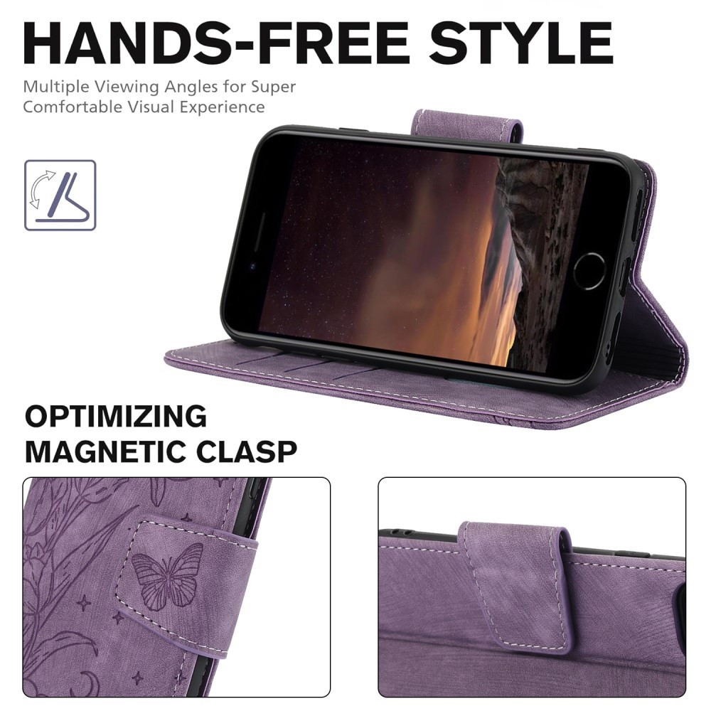 For iPhone 16e Etui Sommerfugl Blomst Ripebestandig Telefondeksel