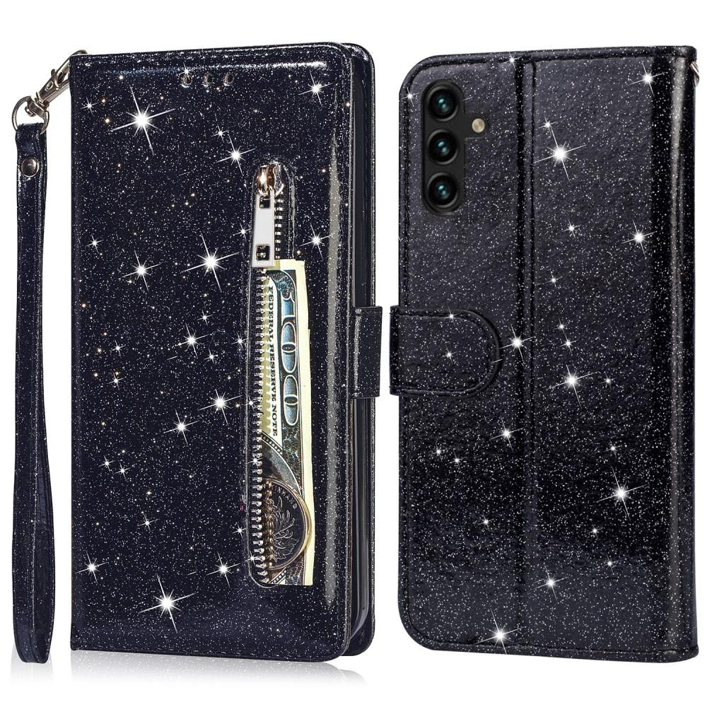 For Samsung Galaxy A56 5G Stående Glitterdeksel med Glidelåslomme - Black