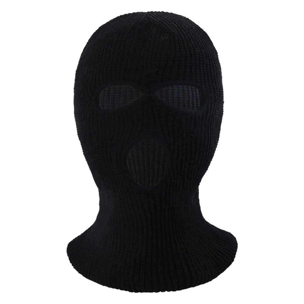 Vinter helmaske Tre - hulls Balaclava Strikket hattehals Damask - Svart