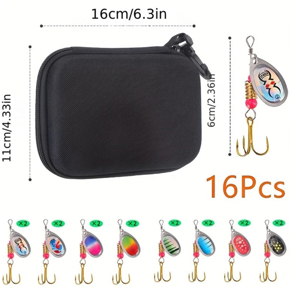 16 stk 3g metallspinner agn for fiskelokk med oppbevaringspose - A