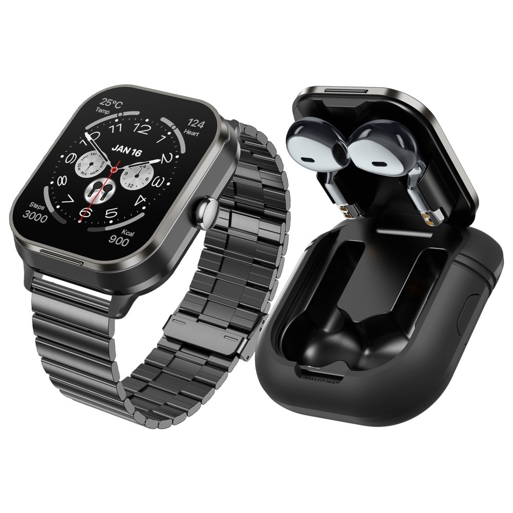 D8 Pro 2-i-1 Bluetooth TWS-øretelefon Smartklokke Helseovervåking Bluetooth-ringesportsklokke, stålstropp - svart 2.01 tommers Super HD-skjerm: 2.01-tommers HD stor skjerm, gir deg en stor og klar opplevelse, mer praktisk å se data Smart klokke og