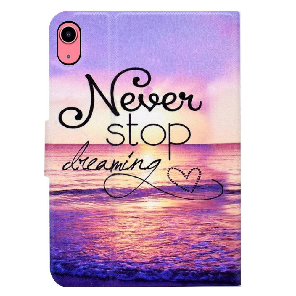 For iPad 10.9 (2022) /iPad 10. generasjons mønsterutskrift PU-lær til nettbrettveske Sammenleggbart stativ Magnetisk flippdeksel med kortholder - Stopp aldri å drømme Bes kyttelsesdekselet er laget av PU-lær og termoplastisk polyuretan av god kvalitet, som beskytter nettbrettet ditt i kompakt stil. Design for kortspor for lagring av kortene dine. Dekselet kan brettes opp som en støtte for enkel visning. L@@