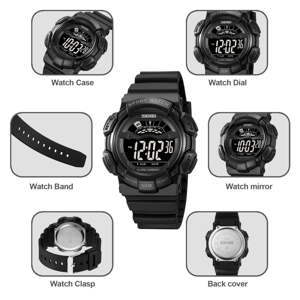 SKMEI 50m vanntett armbåndsur - svart/hvit urskive