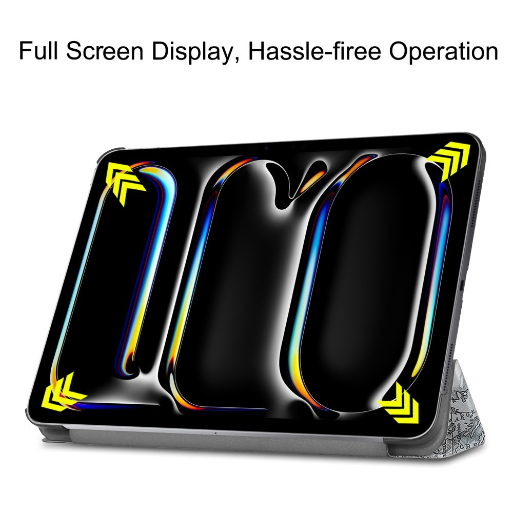 God støtdemping og støtmotstand Kompatibel med: iPad Pro 11 (2024) Pakken inneholder: 1 x Trifoldbart stativ Smart nettbrettveske Andre varer ikke inkludert