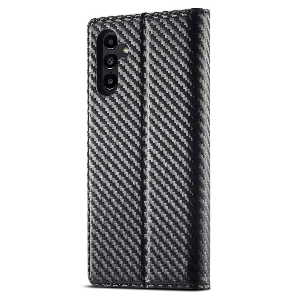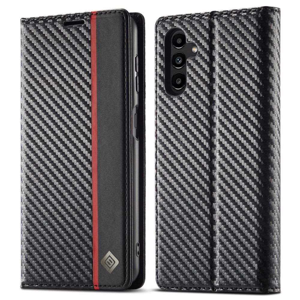 LC.IMEEKE til Samsung Galaxy A15 Carbon Fiber Texture Phone Flip Leather Lommebok-deksel Dråpesikkert mobiltelefonveske - Horisontal stripe Laget av PU-lær+TPU-materiale, dekselet er tøft og holdbart. Overflaten har karbonfiberstruktur, slitesterk, støvtett og anti-fingeravtrykk. Den passer perfekt til telefonen din.