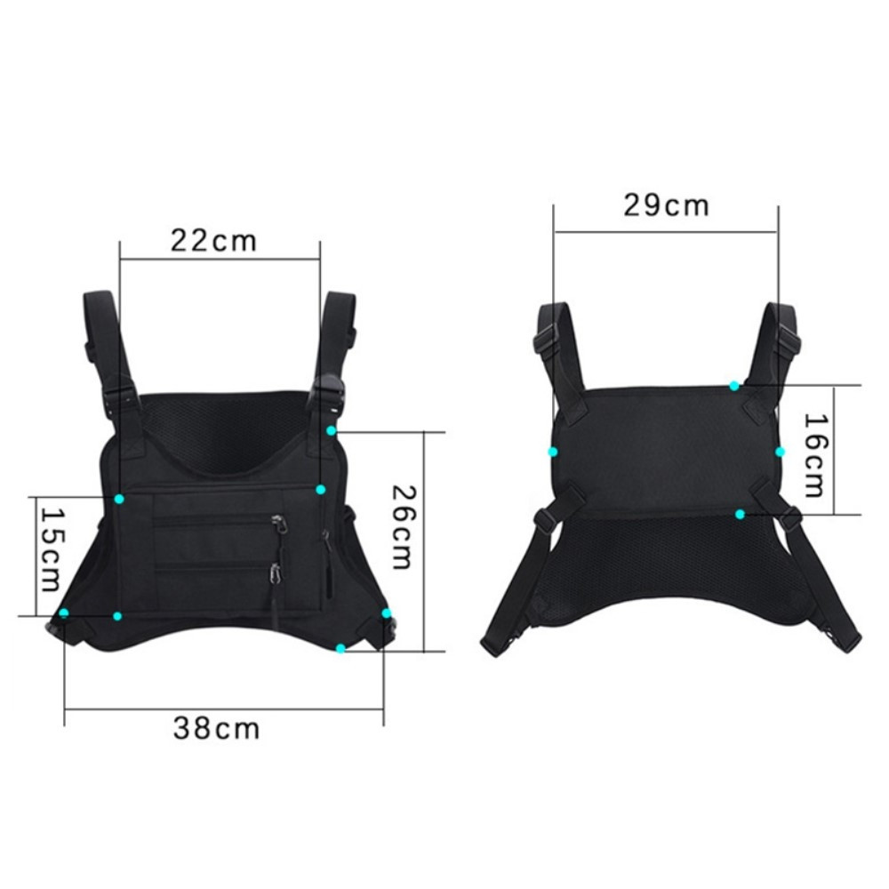 Utendørs taktisk vestpose for menn Vanntett polyester brystveske med flere lommer - svart Denne vesten er designet med flere lommer for å imøtekomme forskjellige nødvendigheter som nøkler, kort og mer Vesten vår er utstyrt med solide glidelåser i metall som er bygget for å vare Skreddersydd for å møte individuelle behov, skulderstroppen kan enkelt justeres for å oppnå ønsket lengde Enten du går på tur, reiser eller bare løper ærend rundt i byen, gir denne vesten et snev av stil til antrekket ditt mens du tjener formålet
