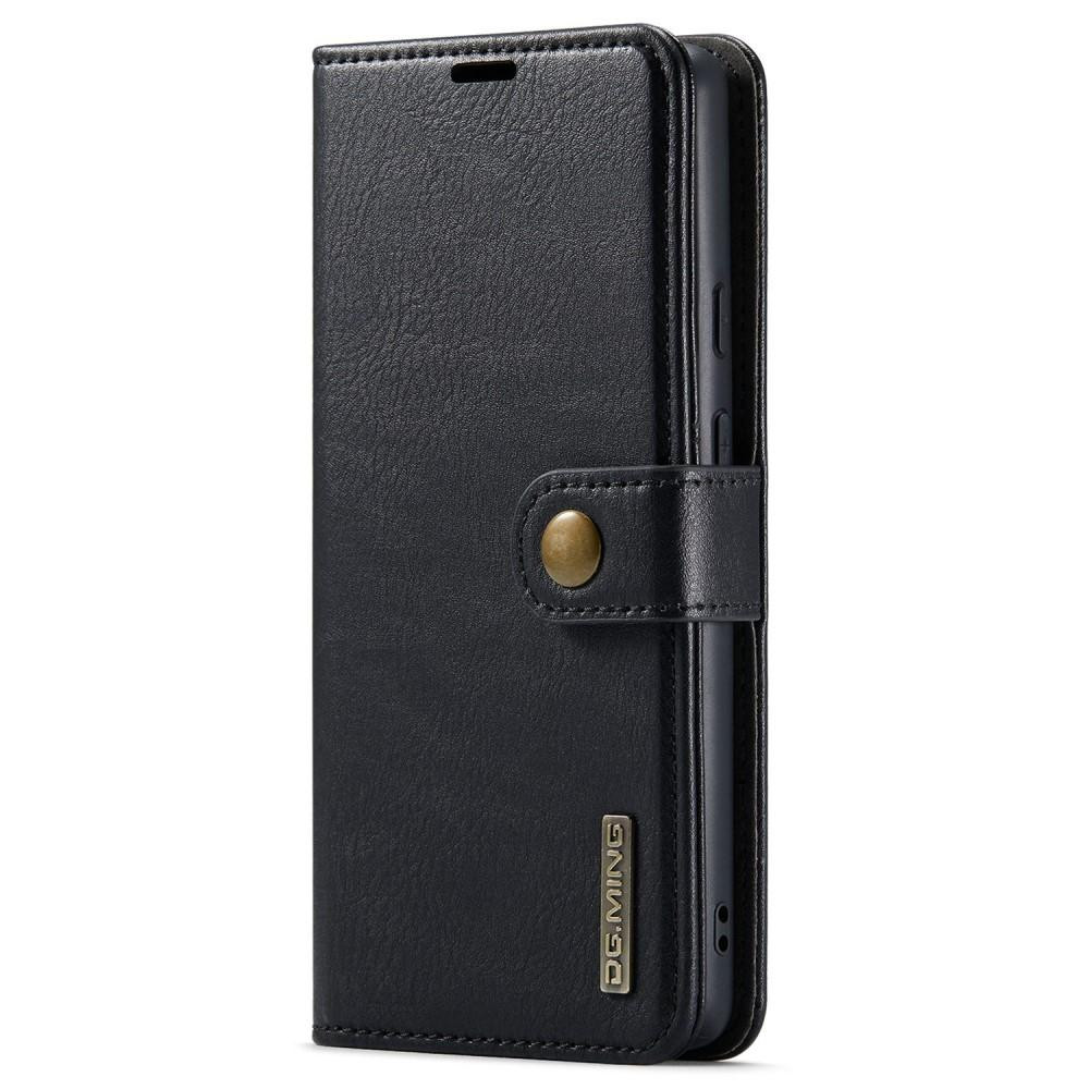 DG.MING Split lærveske til Google Pixel 6a, støtsikkert, avtakbart mobiltelefonveske med lommebok-stativ - svart