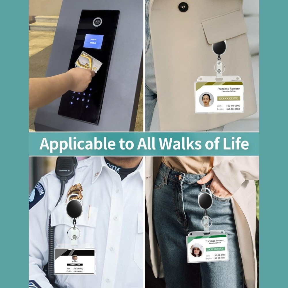 【Dobbelfunksjonsdesign】 Allsidig ID-kortholder med uttrekkbar snor, egnet for både vertikal og horisontal kortvisning.